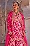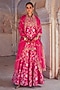 Featuring a pink kurta in pure banarasi silk base with dori, marodi and sequins embroidery. It is paired with embroidered gharara pants and a pure silk organza dupatta. Style this kurta with traditional juttis and a matching potli bag for a timeless festive look,