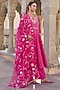 Featuring a pink anarkali in pure silk base with marodi, sequins, zardosi, gota patti, dori and resham hand embroidery. It is paired with pure silk pants and a pure silk organza dupatta. Accentuate it with statement jewellery and heels for a festive occasion, wedding or engagement ceremony.