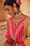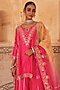 Featuring a pink kurta in pure silk base with dori, marodi, sequins, zardosi and mukaish hand embroidery. It is paired with sharara pants and a pure silk organza dupatta. Accentuate it with jewellery, a sleek clutch and heels for a graceful look. Perfect for special celebrations, wedding or festive ceremony.