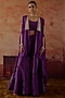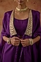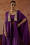 Featuring a purple cape in pure silk base with dori, sequins and gota hand embroidery. It is paired with sharara pants and a blouse. Accentuate it with jewellery, a sleek clutch and heels for a graceful look. Perfect for special celebrations, wedding or festive ceremony.