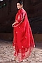 Vinita Bhansali presents a red kurta in pure silk base with dori, marodi, sequins and thread embroidery. It is paired with pants and a pure silk organza leheriya dupatta. Style this kurta with traditional juttis and a matching potli bag for a timeless festive look,