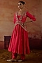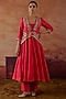 Red Pure Silk Organza Zardosi Embroidered Jacket Anarkali Set