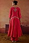 Featuring a red jacket in pure silk organza base with pearls, sequins, marodi, mukaish and zardosi hand embroidery. It is paired with a pure silk anarkali and pants. Accentuate it with jewellery, a sleek clutch and heels for a graceful look. Perfect for special celebrations, wedding or festive ceremony.