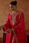 Featuring a red kurta in pure silk base with marodi, sequins, zardosi and pearl hand embroidery. It is paired with pure silk pants and a pure silk organza dupatta. Accentuate it with jewellery, a sleek clutch and heels for a graceful look. Perfect for special celebrations, wedding or festive ceremony.
