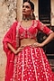 Featuring a red lehenga in pure silk base with dori, marodi, sequins and zardosi hand embroidery. It is paired with a blouse and dupatta. Accentuate it with jewellery, a sleek clutch and heels for a graceful look. Perfect for special celebrations, wedding or festive ceremony.