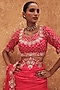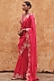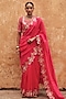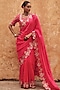 Featuring a red saree in pure silk base with dori, marodi, sequins, zardosi and mukaish hand embroidery. It is paired with a blouse. Accentuate it with jewellery, a sleek clutch and heels for a graceful look. Perfect for special celebrations, wedding or festive ceremony.