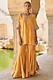 Featuring a yellow kaftan top in pure silk base with marodi, mukaish, sequins, resham and zardosi hand embroidery. It is paired with a shantoon inner and sharara pants. Accentuate it with statement jewellery and heels for a festive occasion, haldi or sangeet ceremony.
