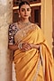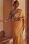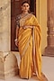 Featuring a yellow saree in pure silk base with dori, marodi, sequins, zardosi, mukaish, gota patti and pearl hand embroidery. It is paired with a blouse. Accentuate it with jewellery, a sleek clutch and heels for a graceful look. Perfect for special celebrations, wedding or festive ceremony.