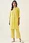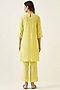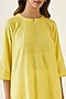 Featuring a maize yellow A-line kurta in pure cotton cambric silk base with pintucks, kantha stitch details, lace trims and embroidery. It is paired with pants. Style it with hoop earrings and sandals for a complete look.