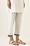 Featuring an off-white kurta in cotton cambric base. It is paired with pants and a pure handwoven linen silk stole. Style it with hoop earrings and sandals for a complete look.