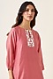 Featuring a rose pink A-line kurta in pure handwoven chanderi base with gathered sleeves and embroidery. It is paired with pants and a cotton slip. Style it with hoop earrings and sandals for a complete look.