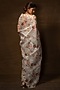 Featuring a silver saree in kora silk base with digital print and french embroidery, including an attached blouse piece. Accentuate this designer saree with statement jewellery and heels for a wedding or engagement ceremony.