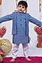 Blue Cotton Handwork Bundi Jacket Set For Boys
