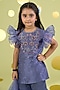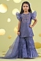 Featuring a blue kurta for girls in cotton base with frilled sleeves and applique motif detail. It is paired with pleated sharara pants and a dupatta. Accessorize it with matching hair accessories and sandals for a stylish ensemble, ideal for any festive occasion or wedding ceremony.