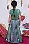 Featuring a grey and green lehenga for girls in tissue and bandhani base. It is paired with a blouse and a dupatta. Accessorise it with matching juttis and delicate bangles for a charming ensemble, ideal for wedding or festive celebrations.
