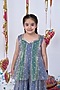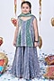 Featuring a grey and green kurta for girls in tissue and bandhani base. It is paired with sharara pants and a dupatta. Accessorise it with matching juttis and delicate bangles for a charming ensemble, ideal for wedding festivities or festive celebrations.