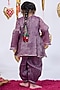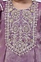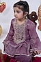 Featuring a purple brocade kurta for girls in tissue base with handwork. It is paired with balloon pants. Style it with sandals and matching hair accessories for a festive occasion or pooja ceremony.