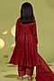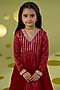 Featuring a red anarkali for girls in tissue base with gota embroidery. It is paired with pants and a dupatta. Style it with sandals and a matching hairband for a cute and comfortable festive look, perfect for family gatherings, festive poojas or cultural celebrations