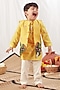 Yellow Cotton Pichwai Kurta Set For Boys