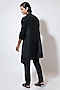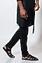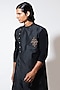 Featuring a black asymmetric layered kurta in spun cotton base with zardosi badge embroidery. It is paired with cropped pants. Perfect wear for sangeet ceremonies.