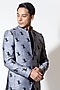 Featuring a grey sports jacket in linen base with stitch details and bird print. Perfect wear for festive occasions.