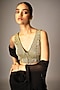 Featuring a black ruffled pre-draped saree in dupion base with 3D dori embellishments. It is paired with a dupion blouse having pearl details. Accentuate with statement jewellery and heels for festive occasions, cocktail events or wedding functions.