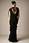 Featuring a black draped gown saree in georgette base with 3D machine embroidery. Accentuate with statement jewellery and heels for festive occasions, cocktail events or wedding functions.