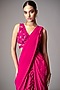 Featuring a fuchsia ruffled pre-draped saree in georgette base. It is paired with a silk dupion blouse having dori work, sequins, glass beads and 3D embellishments. Accentuate it with statement earrings and heels for a cocktail party, wedding or sangeet ceremony.