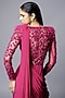 Featuring a fuchsia pink gown saree in georgette base with 3D resham, dori, beads and cutout floral hand embroidery. Accentuate with statement jewellery and heels for festive occasions, cocktail events or wedding functions.