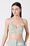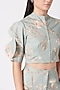 Featuring a light olive green top in organza satin base with floral digital print. It is paired with matching pants.