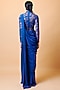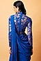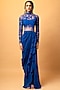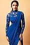 Teal Blue Georgette Resham & Sequins Embroidered Ruffled Draped Gown Saree