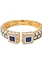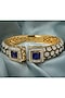 Gold Finish Blue Gemstone Floral Cuff Kada