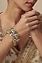Gold Finish Floral Motifs Kundan Polki Kada (Set Of 2)
