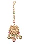 Featuring a gold finish choker necklace studded with gemstones and beads, set in mixed metal. It is paired with a matching pair of earrings and a maangtikka. Perfect choice for weddings, parties and for other Indian festivities.