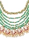 Gold Finish Green Beaded & Gold Gemstone Long Layered Necklace Set
