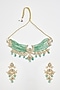 Gold Finish Green Beaded & Pearl Floral Choker Necklace Set