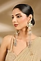 Featuring a pair of gold finish enameled long dangler earrings studded with green stones and tassel chains, set in mixed metal. Perfect for wedding celebrations, festive soirees or cultural gatherings adding a regal charm to every look.