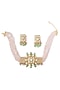 Featuring a gold finish choker necklace studded with kundan polki and green beads, set in mixed metal. It is paired with a matching pair of earrings. Perfect choice for weddings, parties and for other Indian festivities.