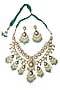 Gold Finish Kundan Polki & Green Beaded Necklace Set
