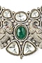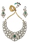 Gold Finish Kundan Polki & Green Gemstone Necklace Set