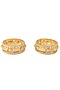 Featuring a pair of gold finish bangles studded with kundan polki, floral motifs and mirror work, set in mixed metal. Perfect choice for weddings, parties and for other Indian festivities.