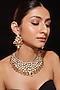Featuring a gold finish necklace studded with kundan polki and pearl drops, set in mixed metal. It is paired with a matching pair of earrings. Add a touch of sparkle to your ensemble, perfect for wedding or sangeet ceremony.