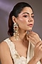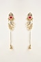 Featuring a pair of gold finish dangler earrings studded with kundan polki, pink stones, pearl drops and cascading chains, set in mixed metal. Perfect for wedding celebrations, festive soirees or cultural gatherings adding a regal charm to every look.