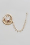 Featuring a gold finish nath studded with kundan polki, red and green beads, set in mixed metal. Perfect wear for festive occasions or wedding ceremonies.