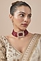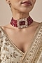 Featuring a gold finish choker necklace studded with red onyx beads, pearls and kundan polki, set in mixed metal. Perfect for weddings or festive occasions.