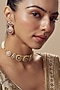 Featuring a gold finish choker necklace studded with kundan polki and red stones, set in mixed metal. It is paired with a matching pair of earrings. Perfect wear for festive occasions or wedding ceremonies.