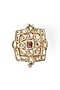 Featuring a gold finish handcrafted ring studded with kundan polki and ruby stones, uncut gemstones and pearls, set in mixed metal. Perfect choice for weddings, parties and for other Indian festivities.