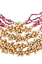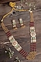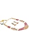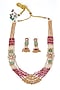 Gold Finish Maroon & Green Beaded Long Layered Necklace Set
