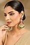Featuring a pair of gold finish chandelier earrings studded with pearl drops, ruby stones and emerald beads, set in mixed metal. Perfect for wedding celebrations, festive soirees or cultural gatherings adding a regal charm to every look.