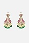 Gold Finish Pearl Drop & Emerald Beaded Chandelier Earrings